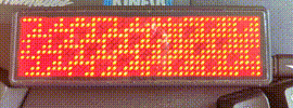 loads the text 'Hello' as message one and 'World!' as message two. Compare the difference in quoting to the previous example. Up to 8 messages can be uploaded. This example uses mode 6, which drops the words with a nice little animation vertically into the display area. Speed is set to maximum here, for smoothness.